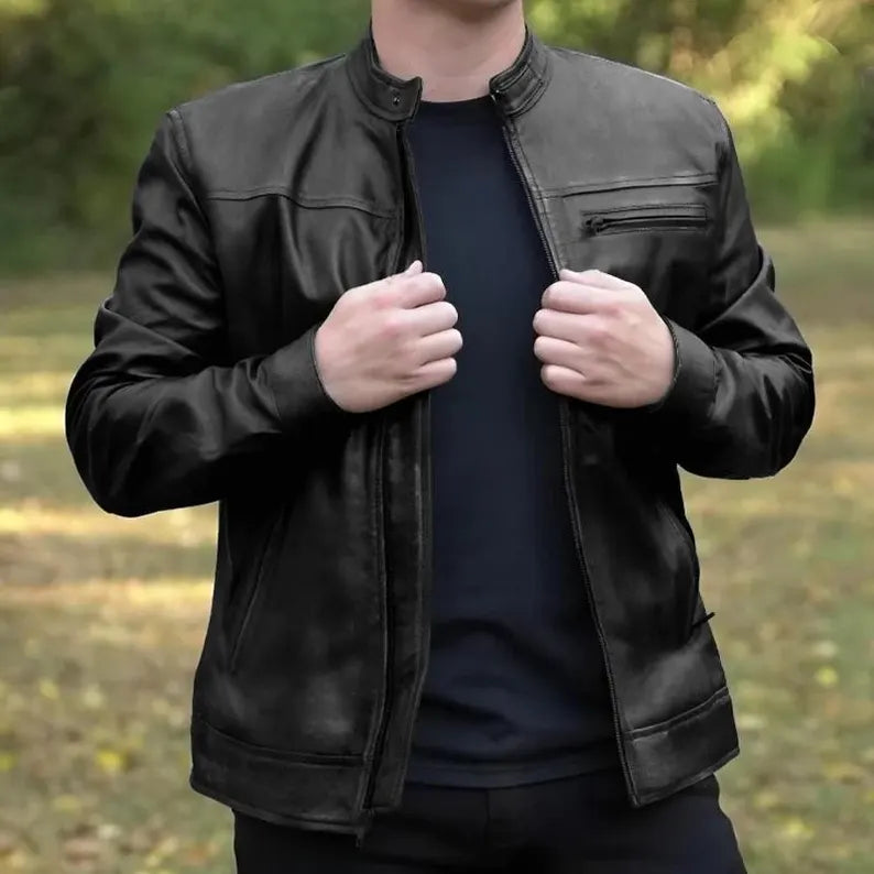 A versatile men's luxury leather jacket that pairs effortlessly with jeans, chinos, or tailored trousers. Essential for building a sophisticated, masculine wardrobe.